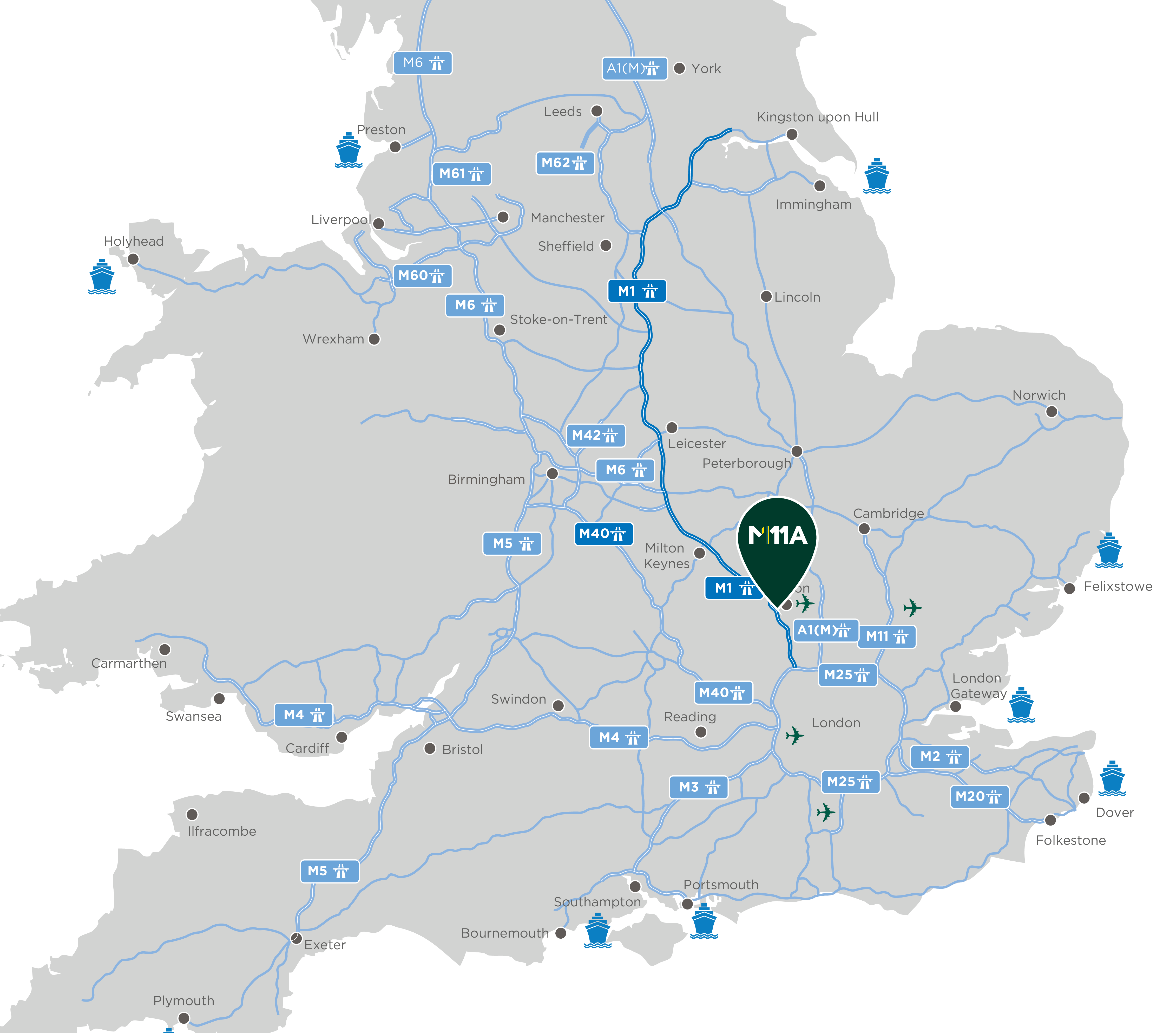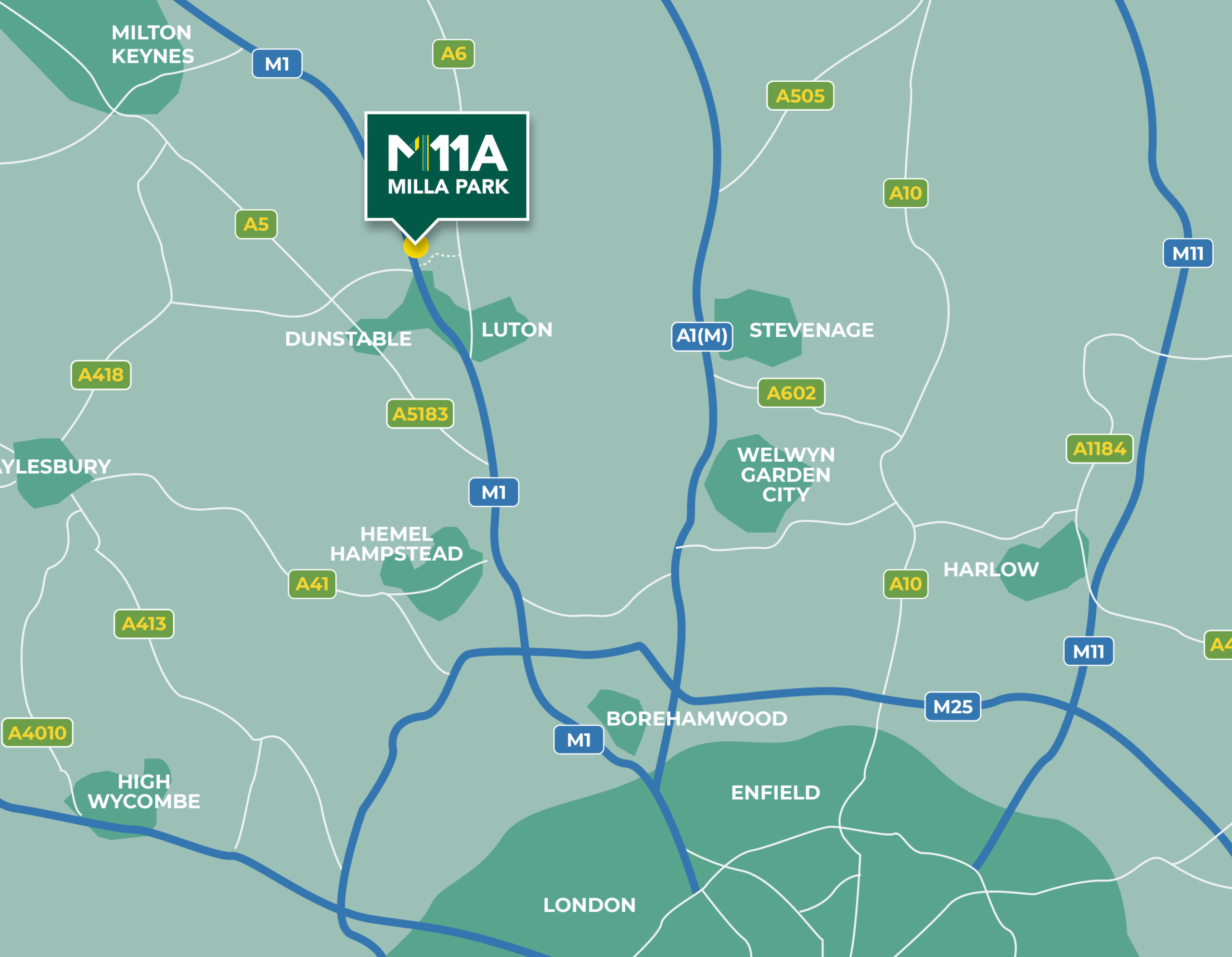 Positioned at J11a M1 Milla Park offers swift access to London and South East markets as well as the Midlands and the North.